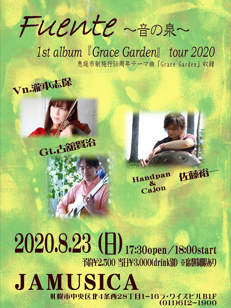 8/23(日) 札幌 JAMSICA(ライヴ配信もします。)